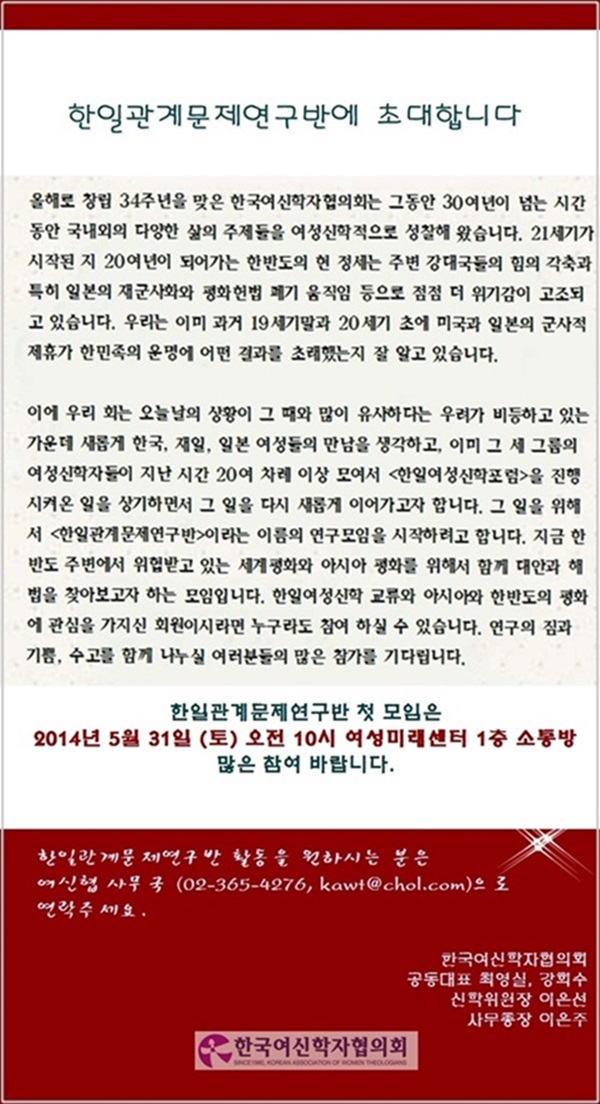 한국기독교교회협의회 기독여성 30년사 출판기념회 안내