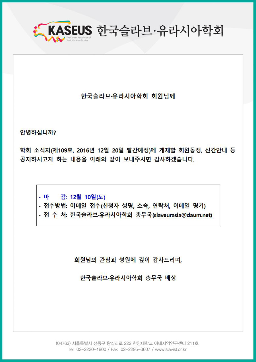 <슬라브학보> 31권 4호 원고모집 안내