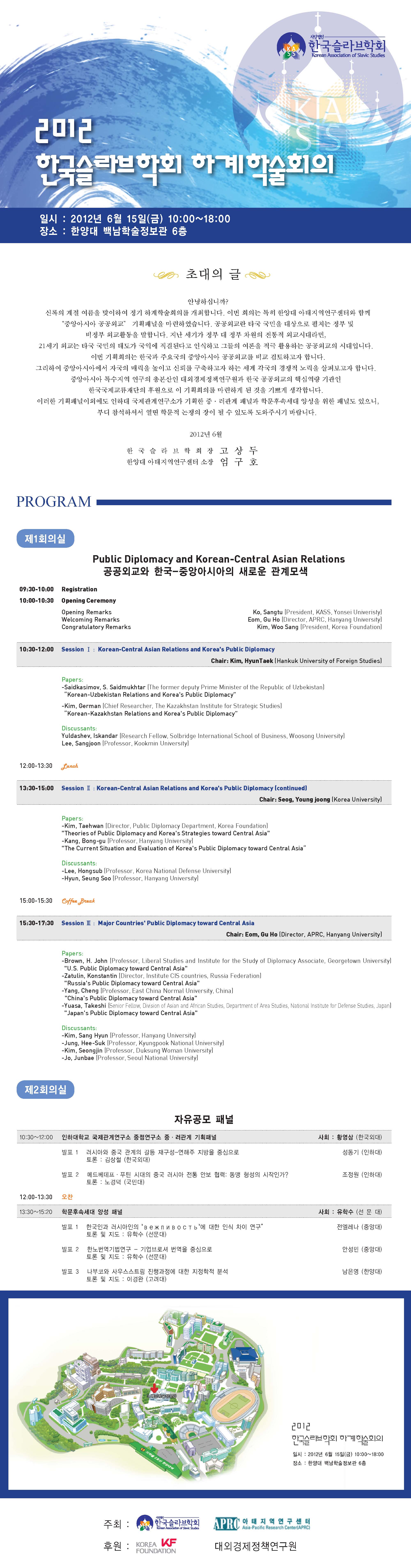 하계학술회의 안내 (6월 15일, 한양대 백남학술정보관)