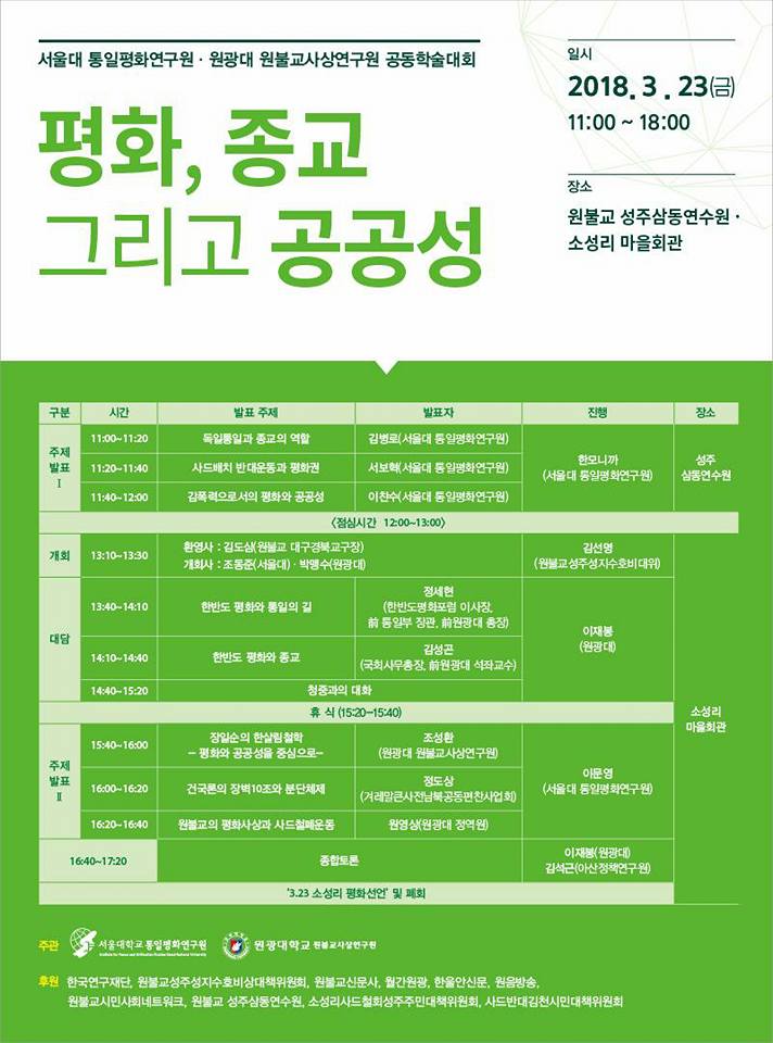 원광대 원불교사상연구원/서울대 통일평화연구원 공동학술대회 개최 안내