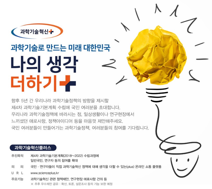 온라인 정책제안 참여공간 '과학기술혁신플러스' 홈페이지 소개