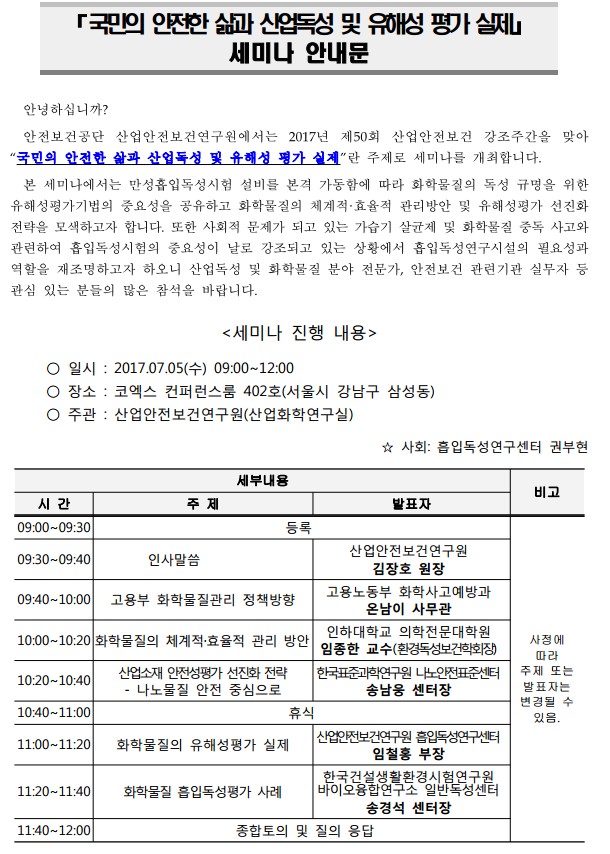 [화학안전산업계지원단] 2017 생활 화학 안전주간(7/2-4) 안내