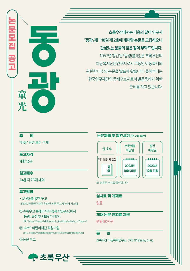 초록우산 어린이재단 아동복지연구소에서 안내드립니다.