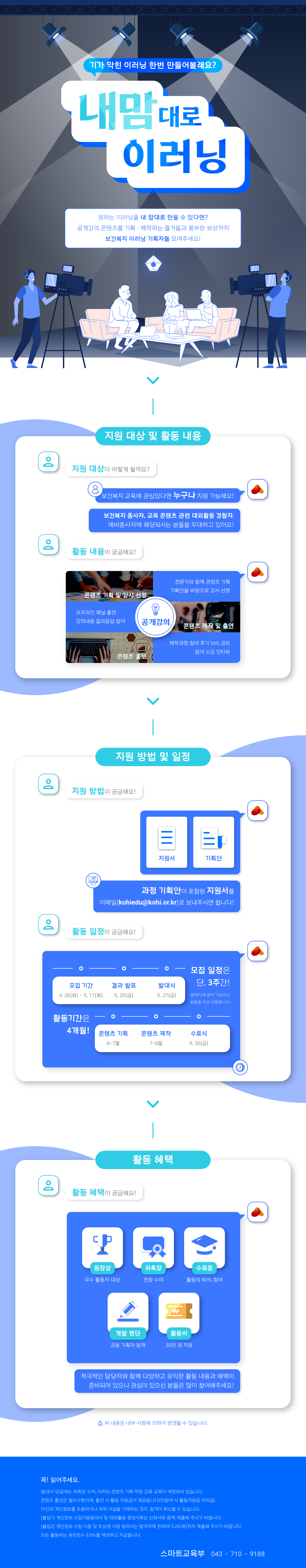 [한국보건복지인재원] 원하는 이러닝, 직접 만들어요! 보건복지 이러닝 국민 기획자 모집 (~5.17 마감)
