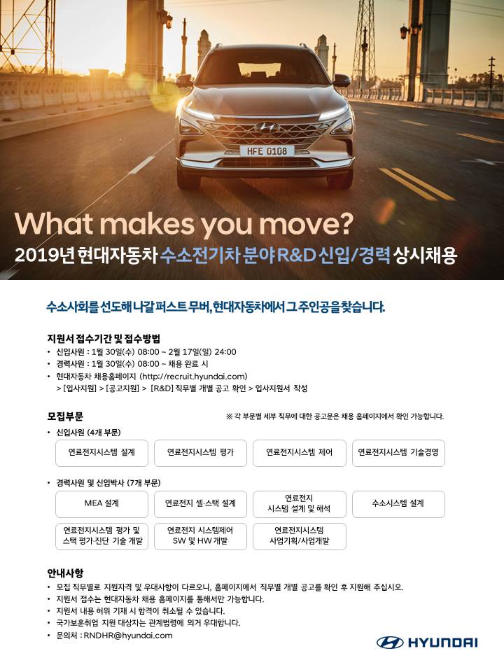 2019년 현대자동차 수소연료전지 R&D 신입/경력 상시채용