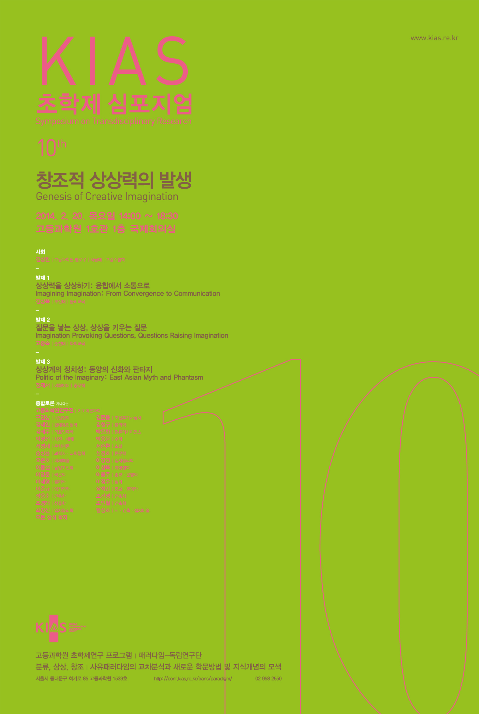 주제는 '창조적 상상력의 발생'으로 다음 내용이 발표됩니다.