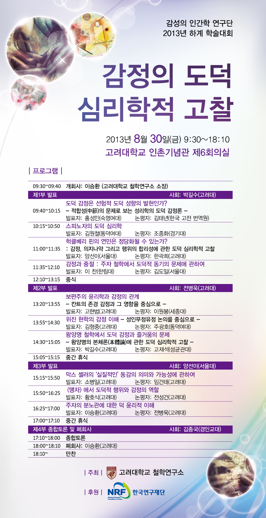 8월 30일(금) 고려대학교 철학 연구소가 주최하는