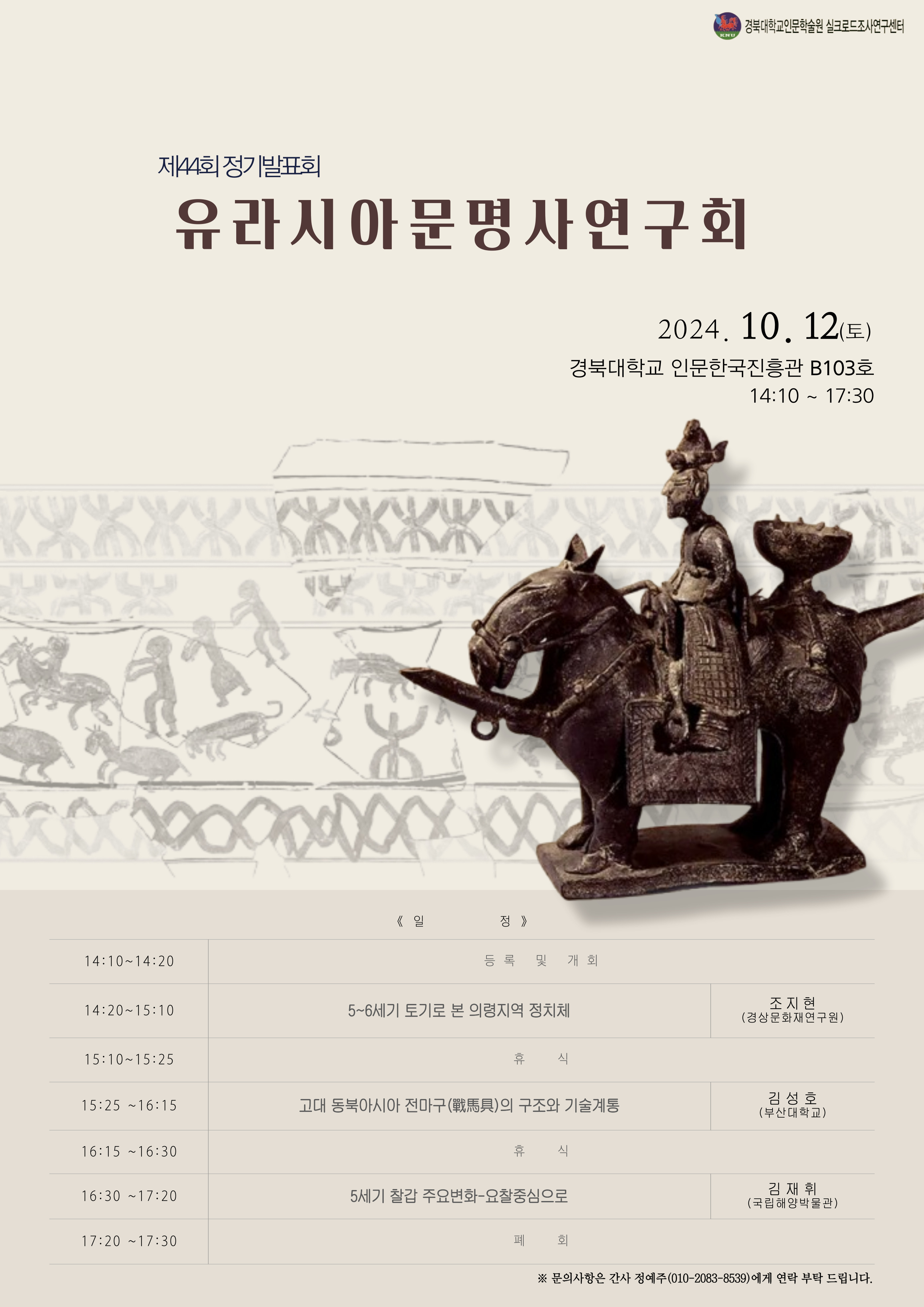 2024년 10월 12일 토요일, 유라시아문명사연구회 제 44회 정기발표회가 진행될 예정입니다.