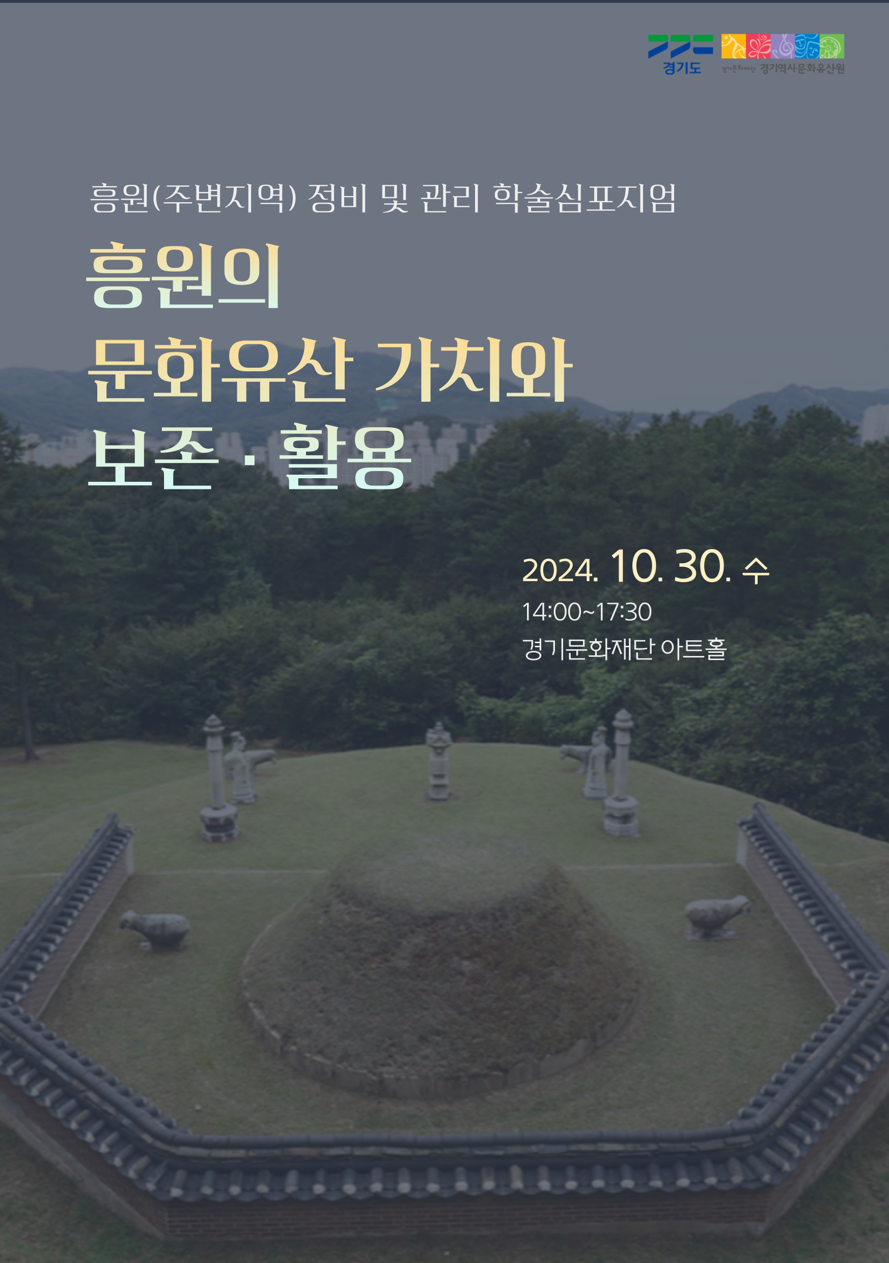 경기문화재단 경기역사문화유산원은흥원의 문화유산 가치와 보존활용을 주제로 학술심포지엄을 개최합니다.