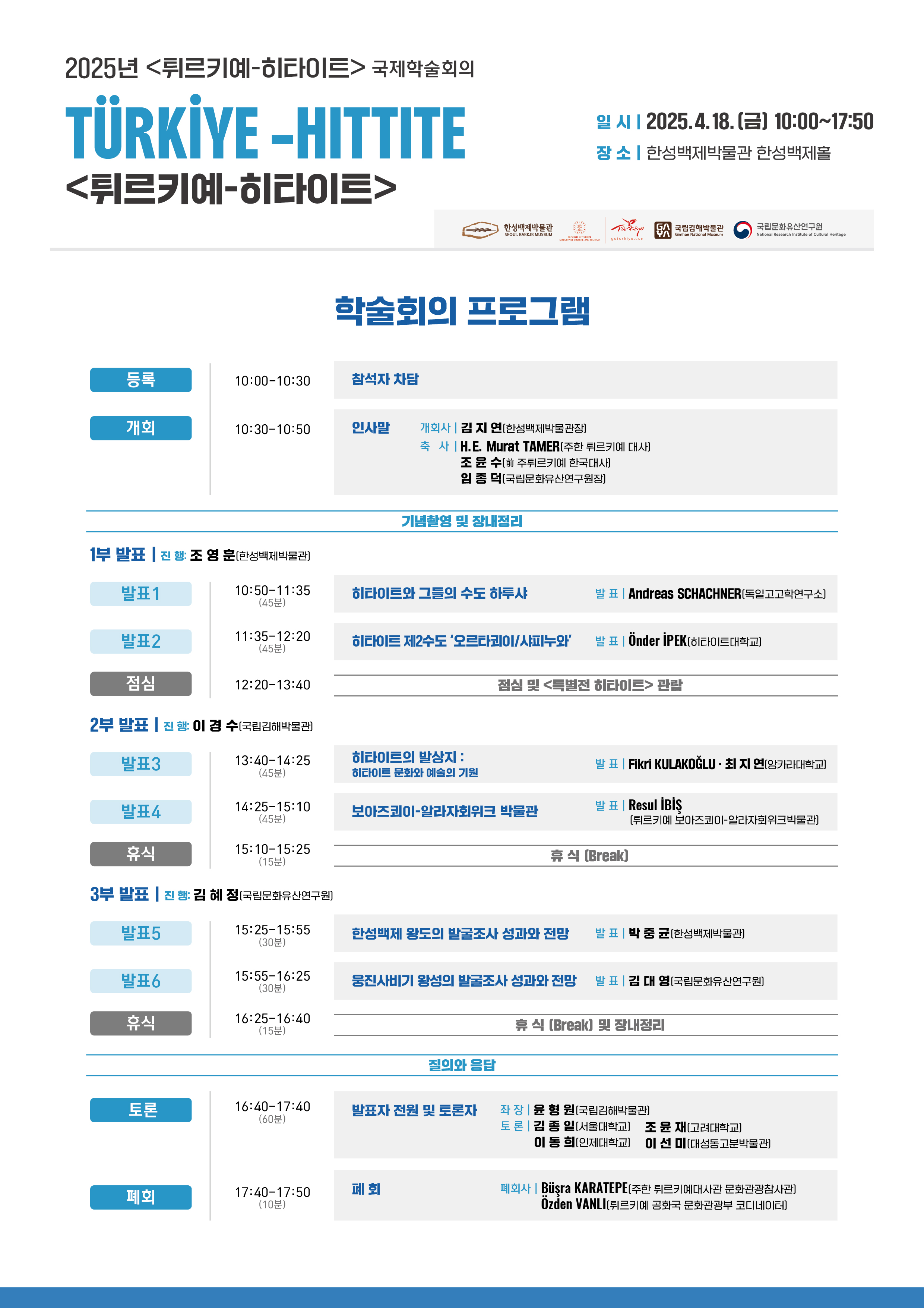 [한성백제박물관] (2025.4.18.금) 2025년 <튀르키예-히타이트> 국제학술회의 개최 안내