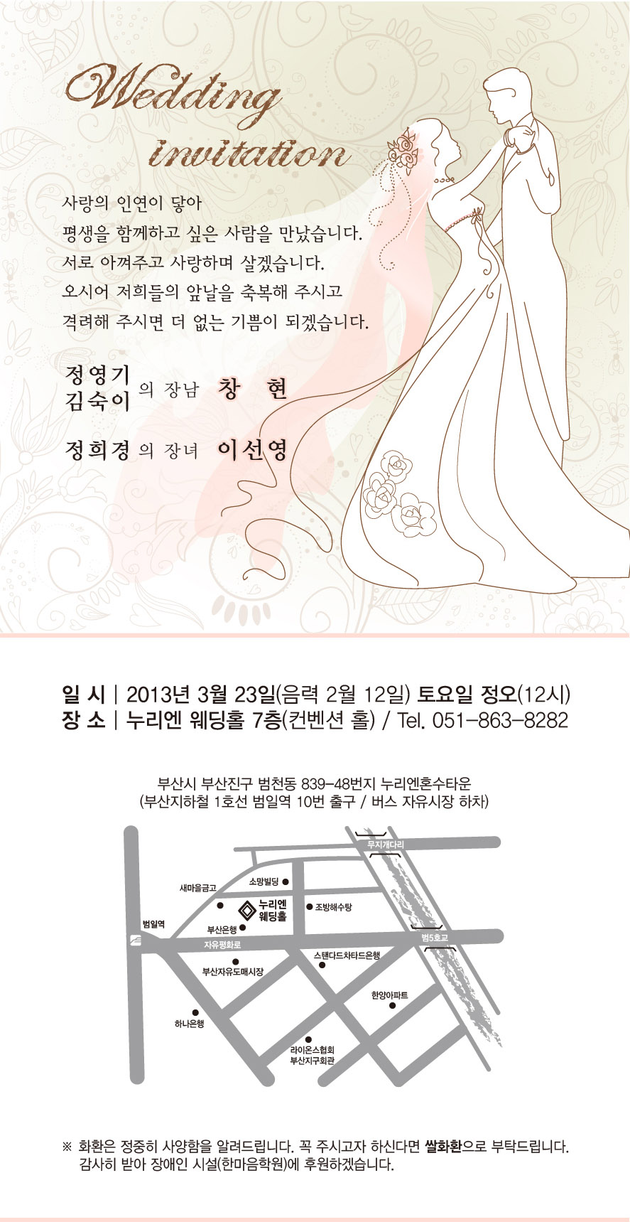 ○ 장 소 : 누리엔 웨딩홀 7층 (컨벤션홀, 051-863-8282)