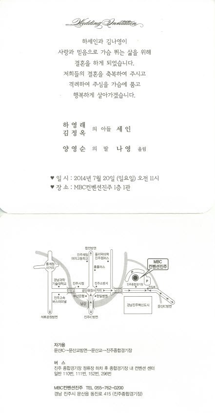 경상대학교 응용생명과학부 환경생명과학과 하영래 교수님의 자제분 세인군의 결혼식을 아래와 같이 알려드립니다. 많은 분이 참석하시어 축하해 주시면 감사하겠습니다.
