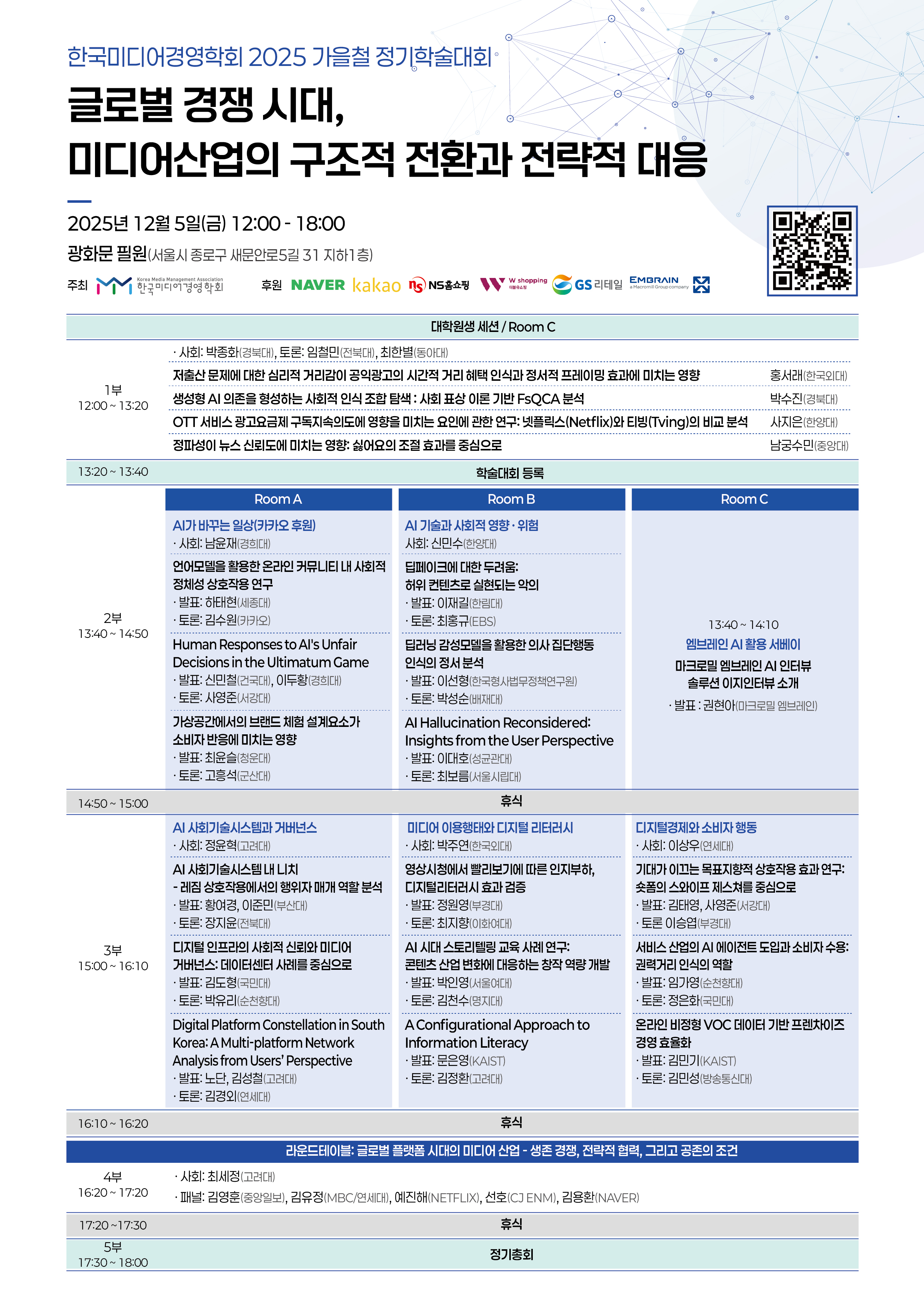 [재공지] 한국미디어경영학회 2025 가을철 정기학술대회 최종 프로그램 안내