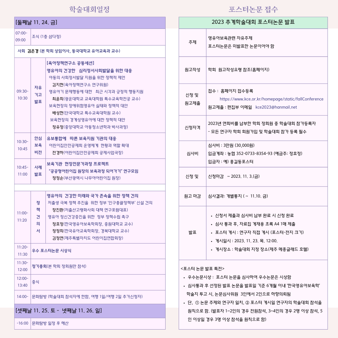 한국영유아보육학회 30주년 기념 2023 추계학술대회_일정 및 포스터논문발표 접수 안내