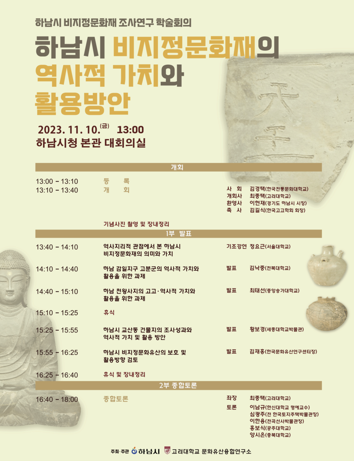 하남시와 고려대학교 문화유산융합연구소에서 하남시 비지정문화재의 역사적 가치와 활용방안을 주제로한 학술회의를 개최합니다.