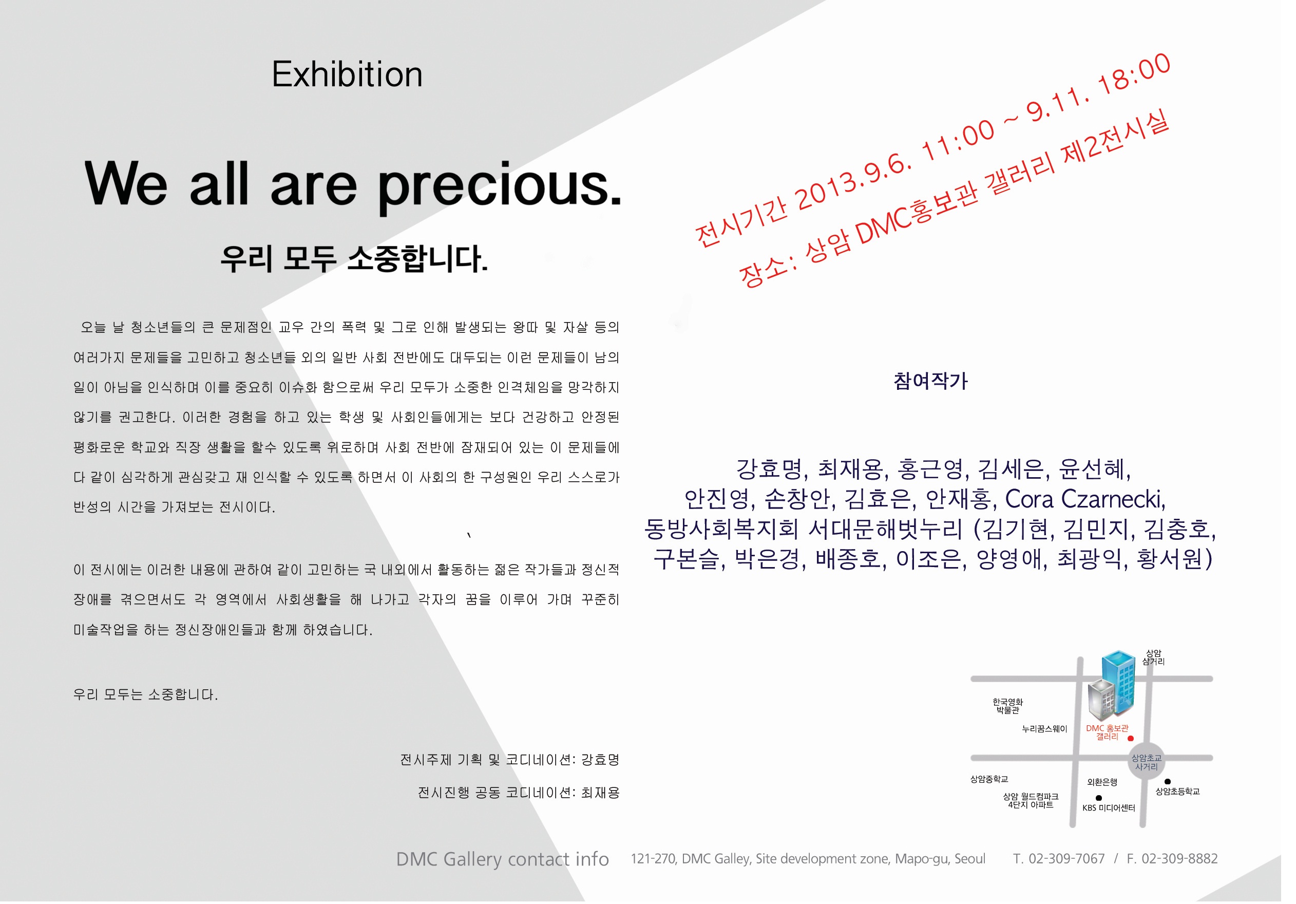 전시주제: < We all are precious.> 우리 모두 소중합니다.