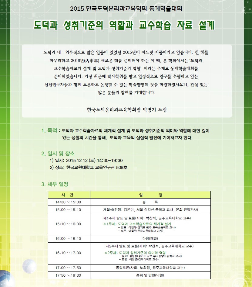 2015 한국도덕윤리과교육학회 동계학술대회