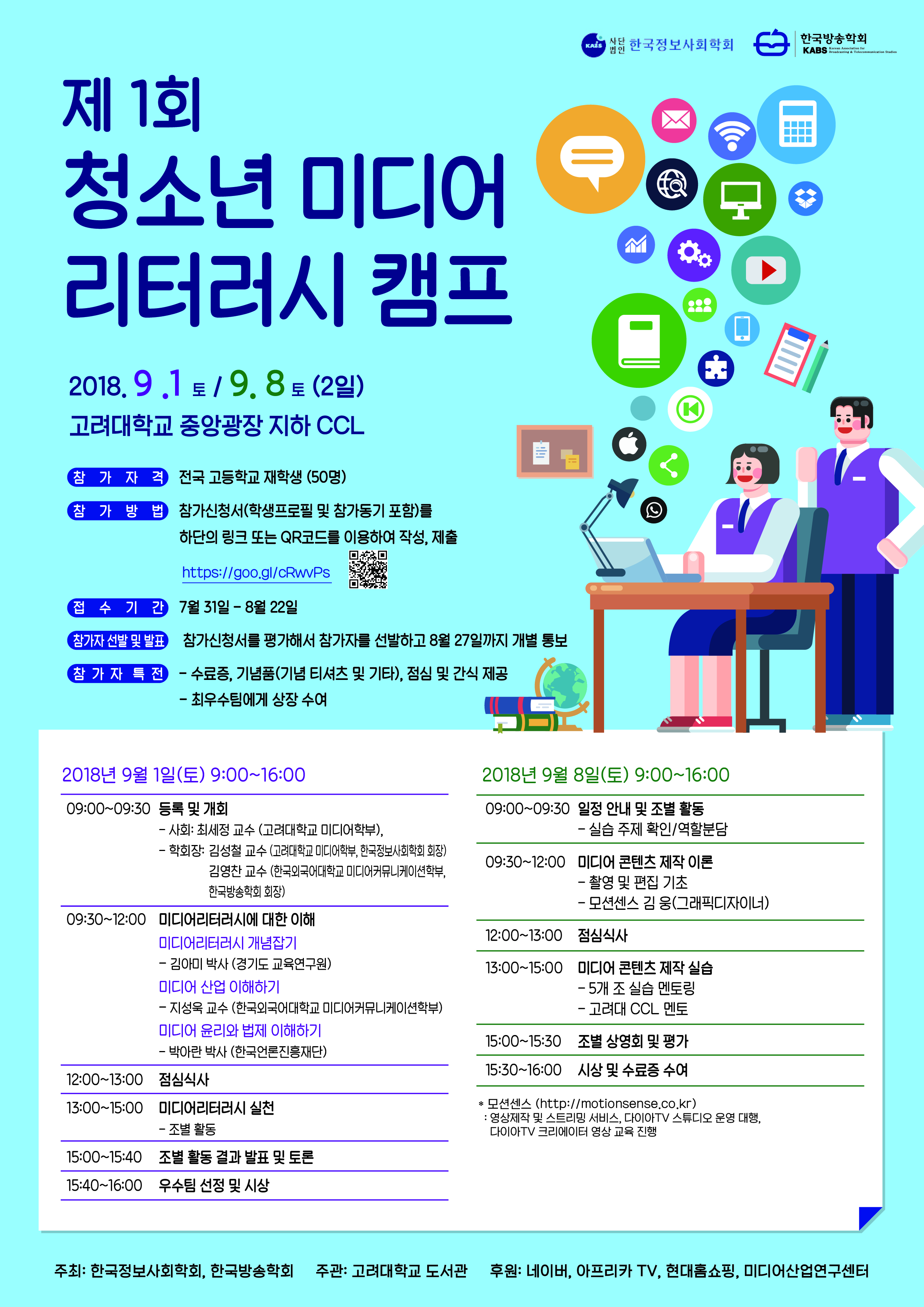 [한국정보사회학회, 한국방송학회] 제1회 청소년 미디어 리터러시 캠프 안내