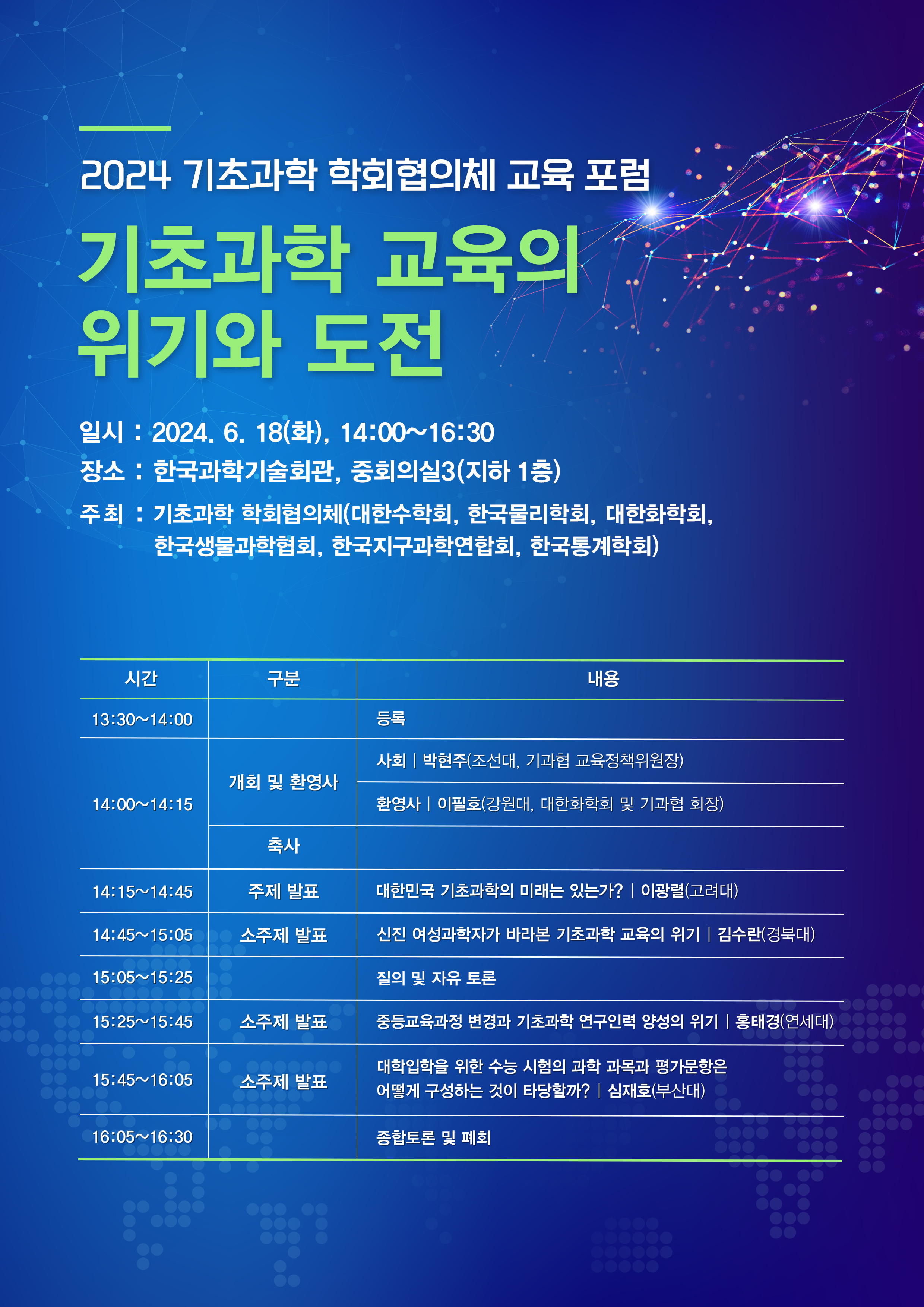 2024년 기초과학 학회협의체 교육 포럼이 아래와 같이 개최됩니다.
