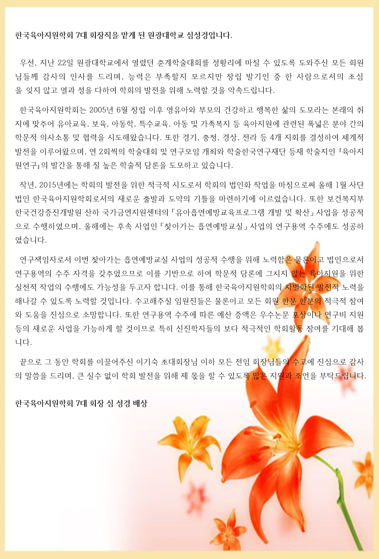 한국육아지원학회 문연심학회장님 이임인사입니다.