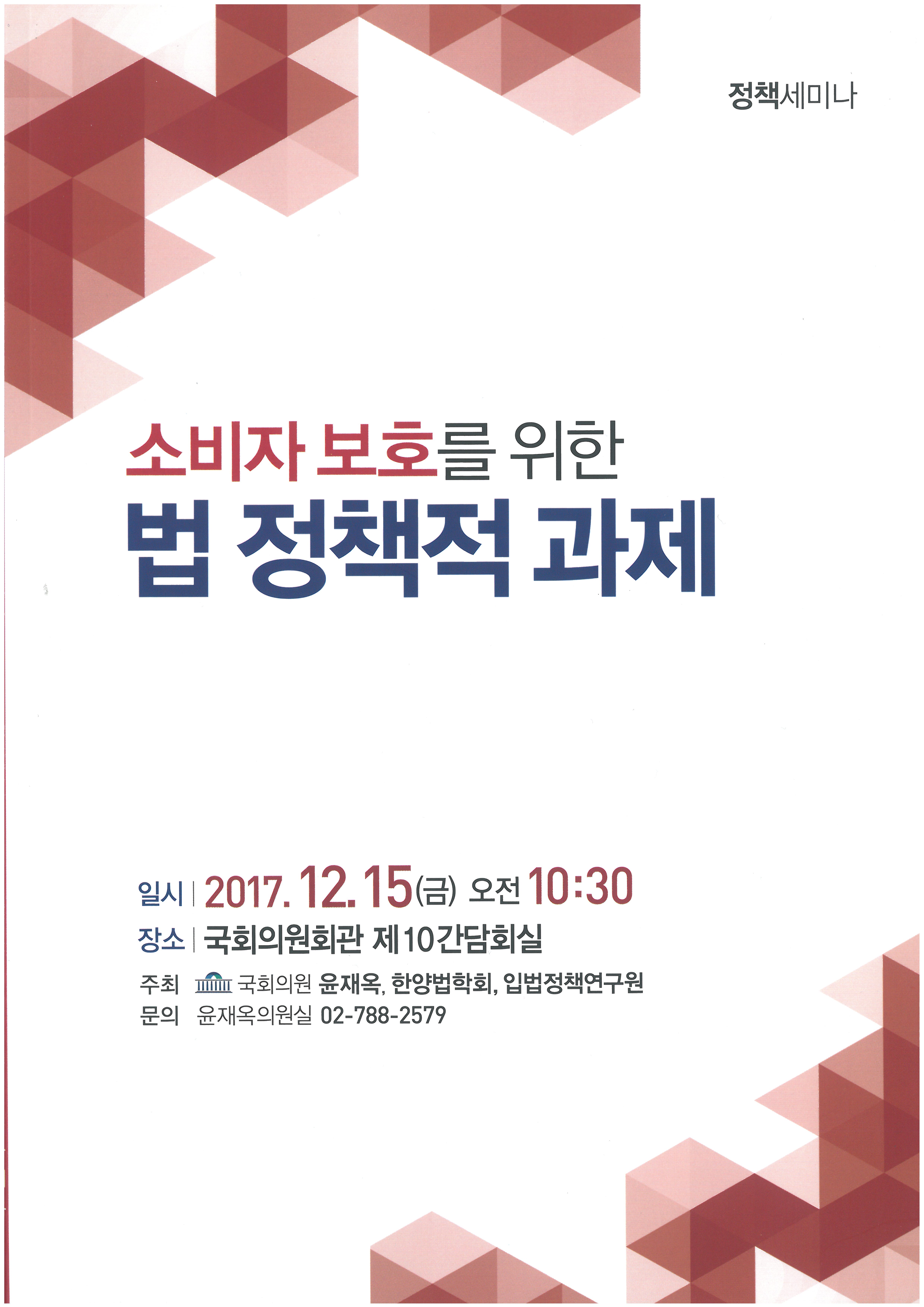 '소비자 보호를 위한 법 정책적 과제'라는 주제로 정책세미나를 개최하였습니다.