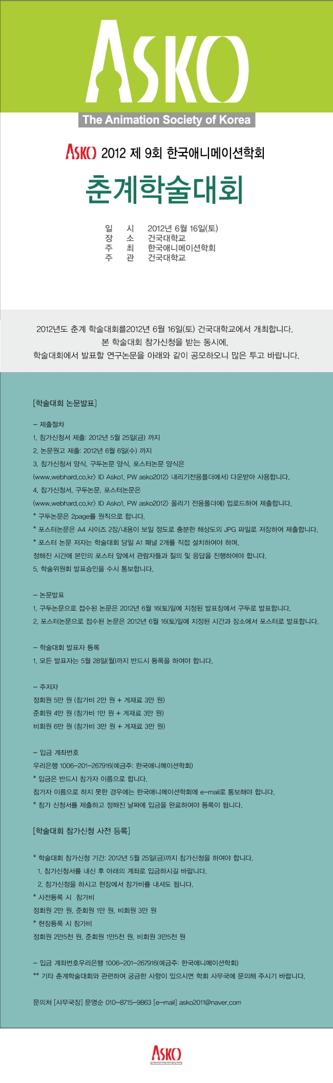 2012 제9회 춘계학술대회 논문접수 안내