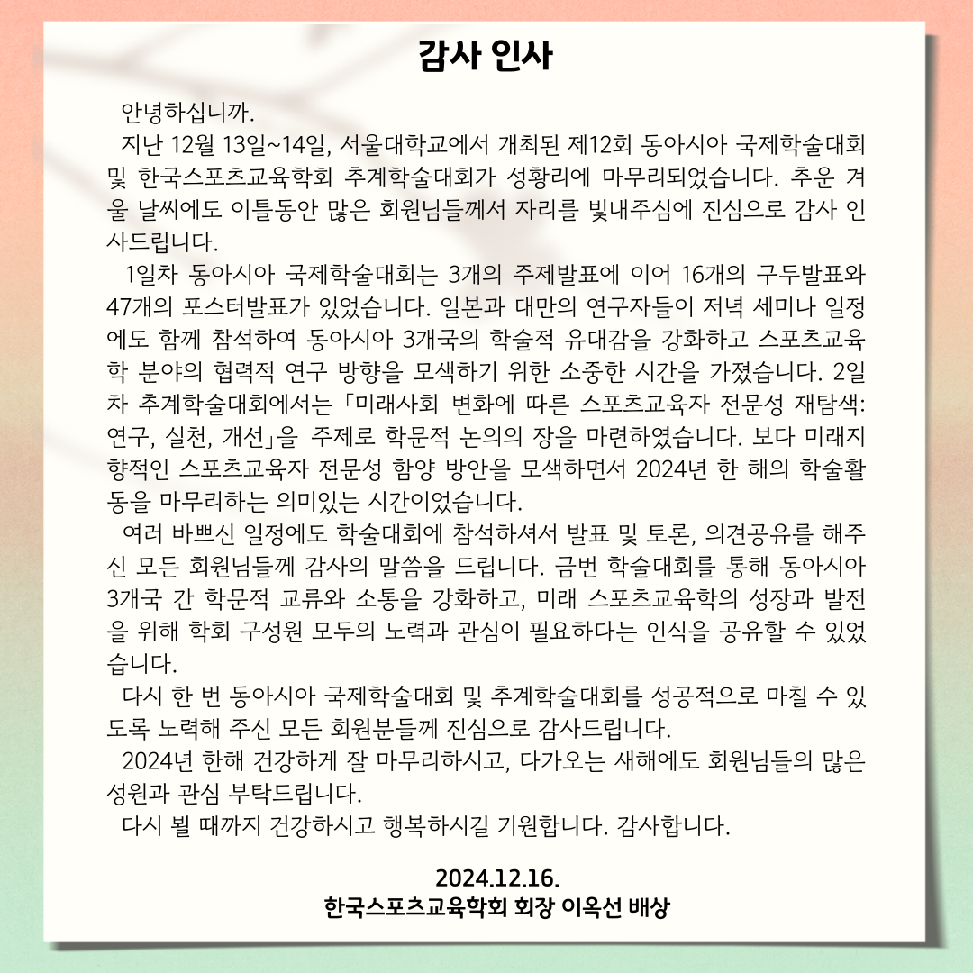 [알림] 한국스포츠교육학회지 제32권 1호 마감기한 연장 안내