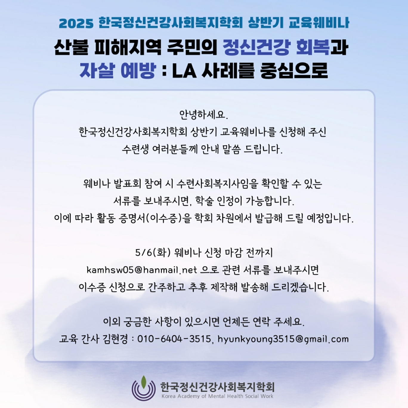 <2025년 한국정신건강사회복지 학회 상반기 교육웨비나 안내>