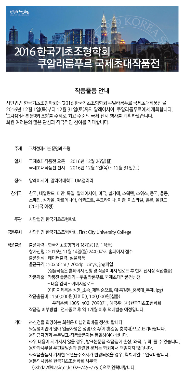 2016 한국기초조형학회 쿠알라룸푸르 국제초대작품전 개최 안내