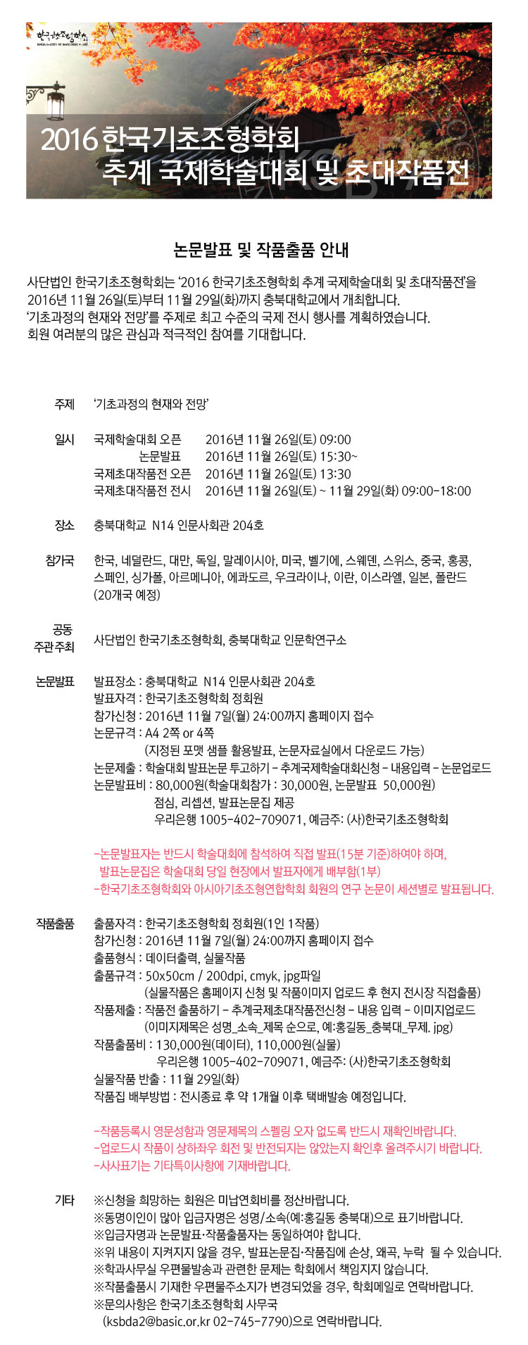 2016 한국기초조형학회 추계 국제학술대회 및 초대작품전 접수마감연장 안내