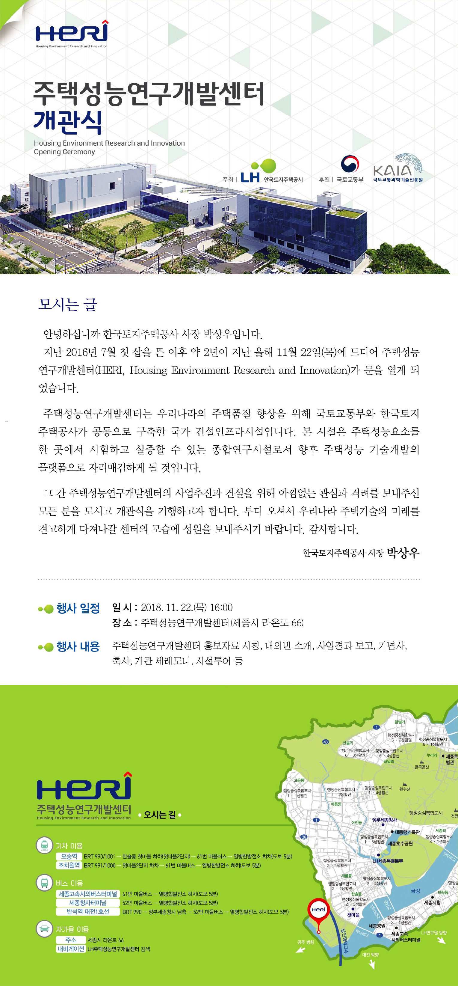 ※홍보※ 주택성능연구개발센터 개관식 안내