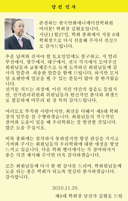 ▶제 8대 학회장 당선 인사