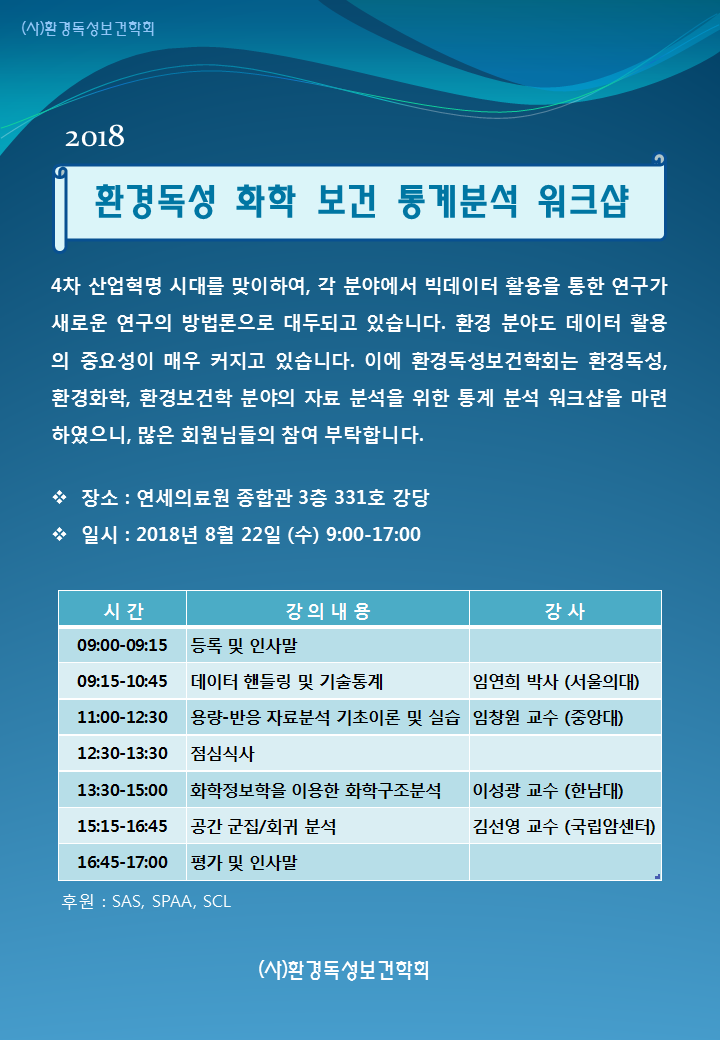 2018 환경독성 화학 보건 통계 분석 워크샵 개최(8/22) 상세안내