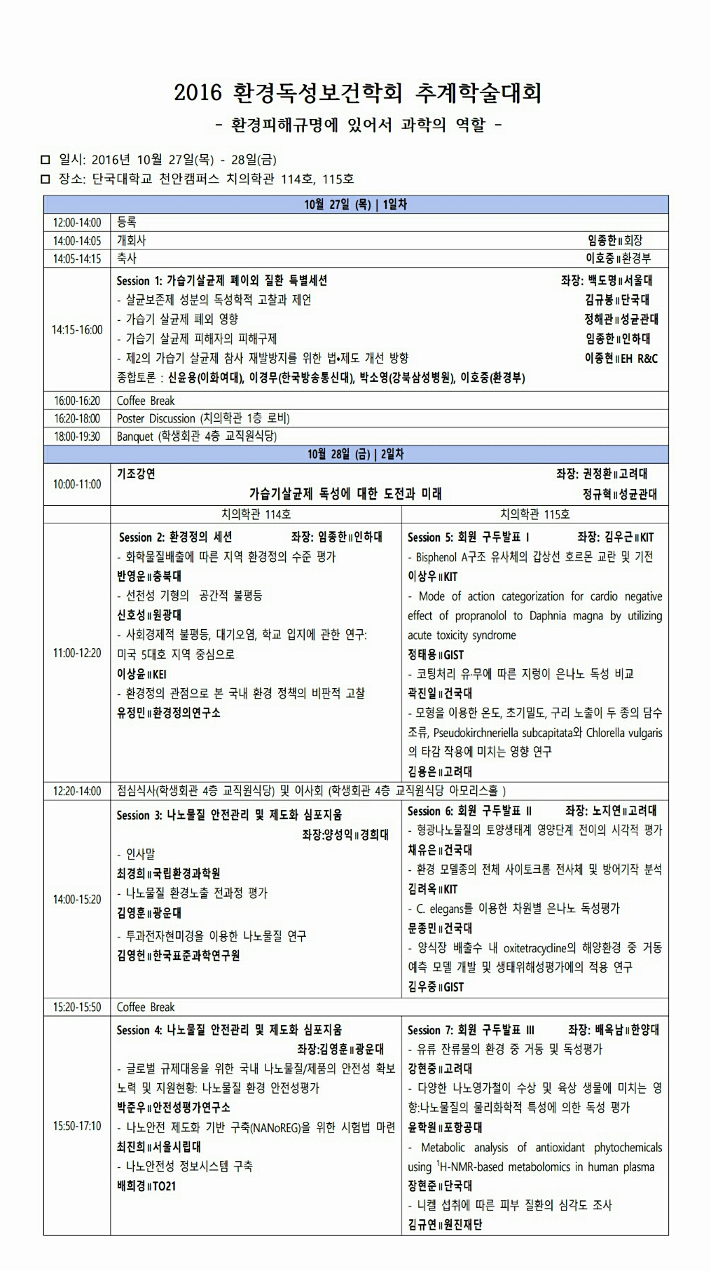 2016 추계학술대회(10/27-28) 최종 프로그램 안내