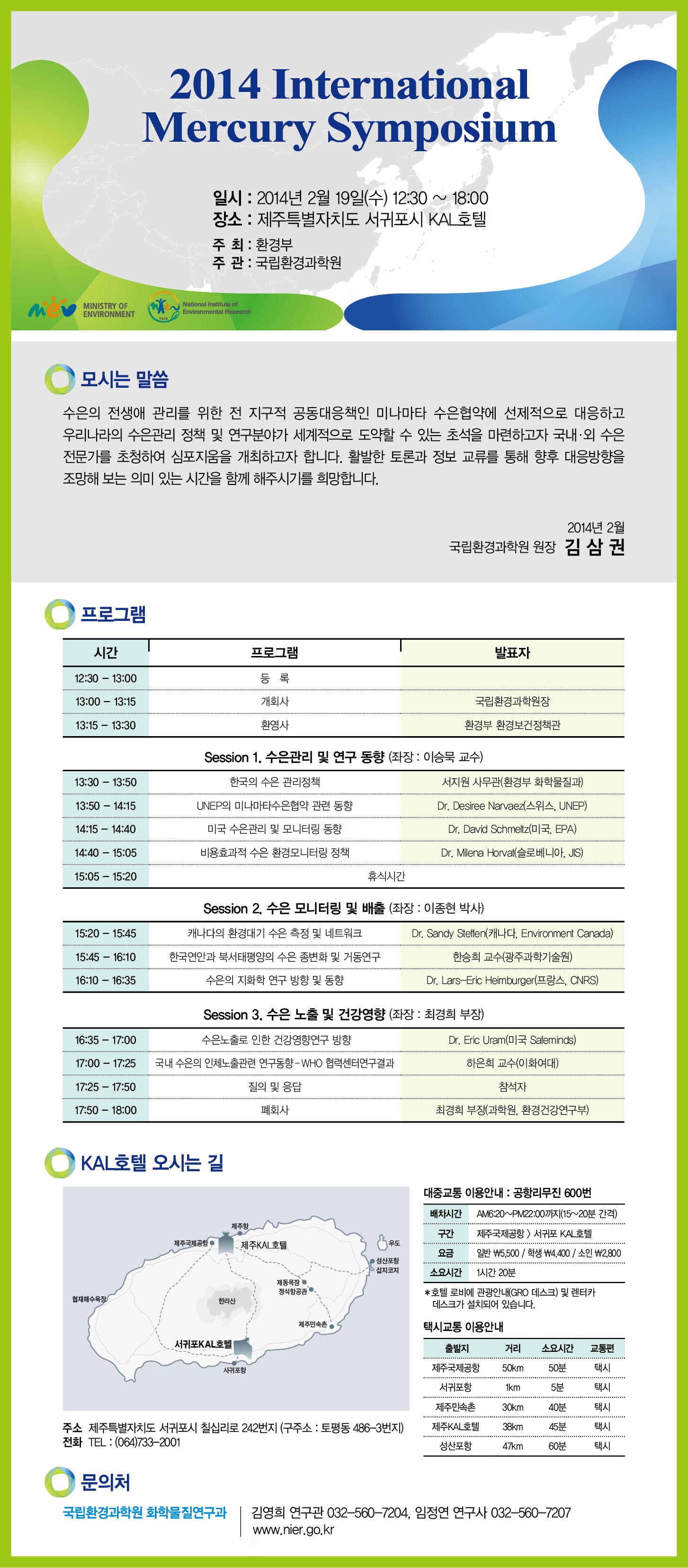 수은 관리 및 연구분야의 국제동향에 대한 정보교류와 협력방안을 논의하고자,국제적으로 저명한 분들을 모시고