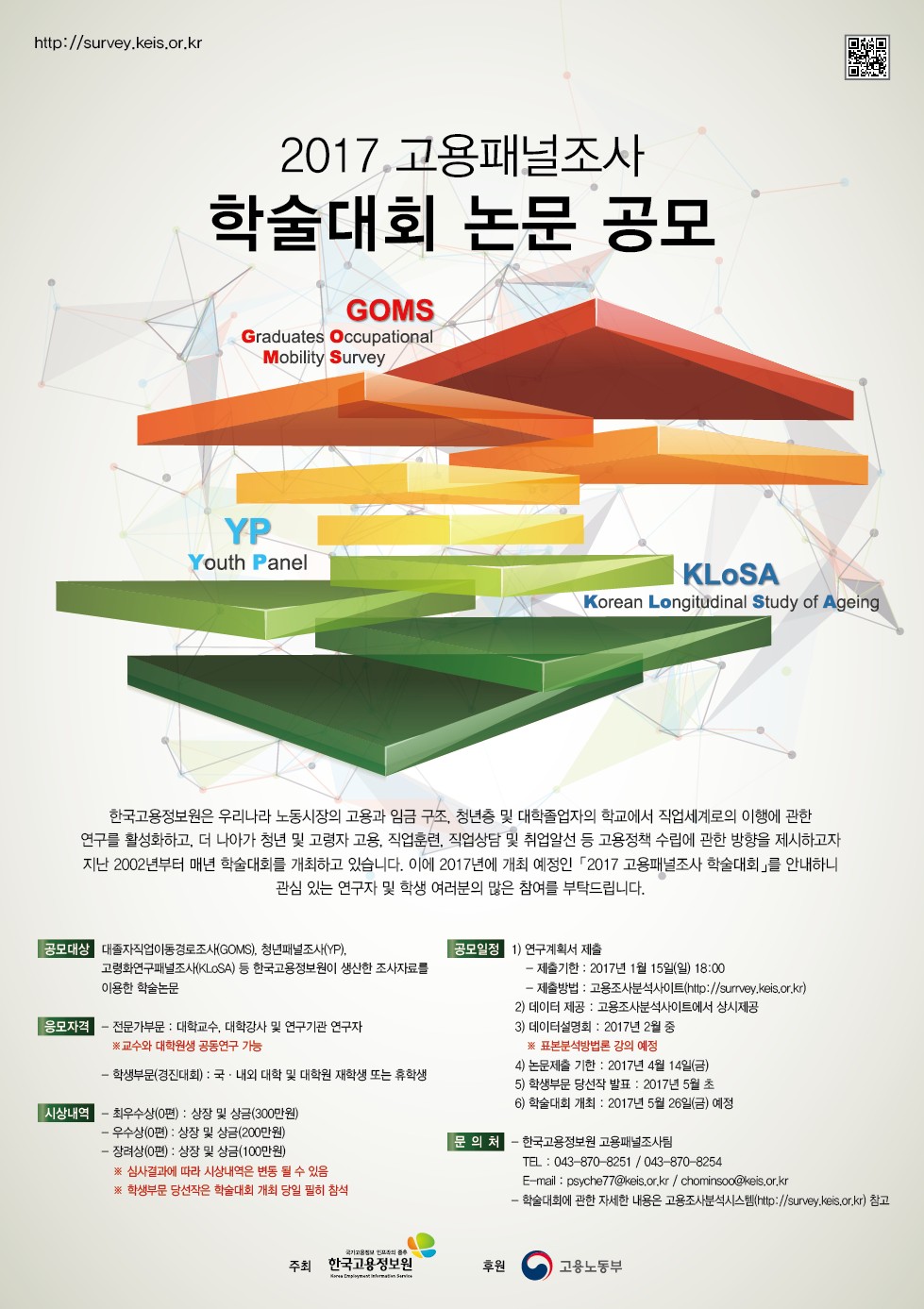 이에 2017년에 개최 예정인 『2017 고용패널조사 학술대회』를 안내하니 관심 있는 연구자 및 학생 여러분의 많은 참여를 부탁드립니다.
