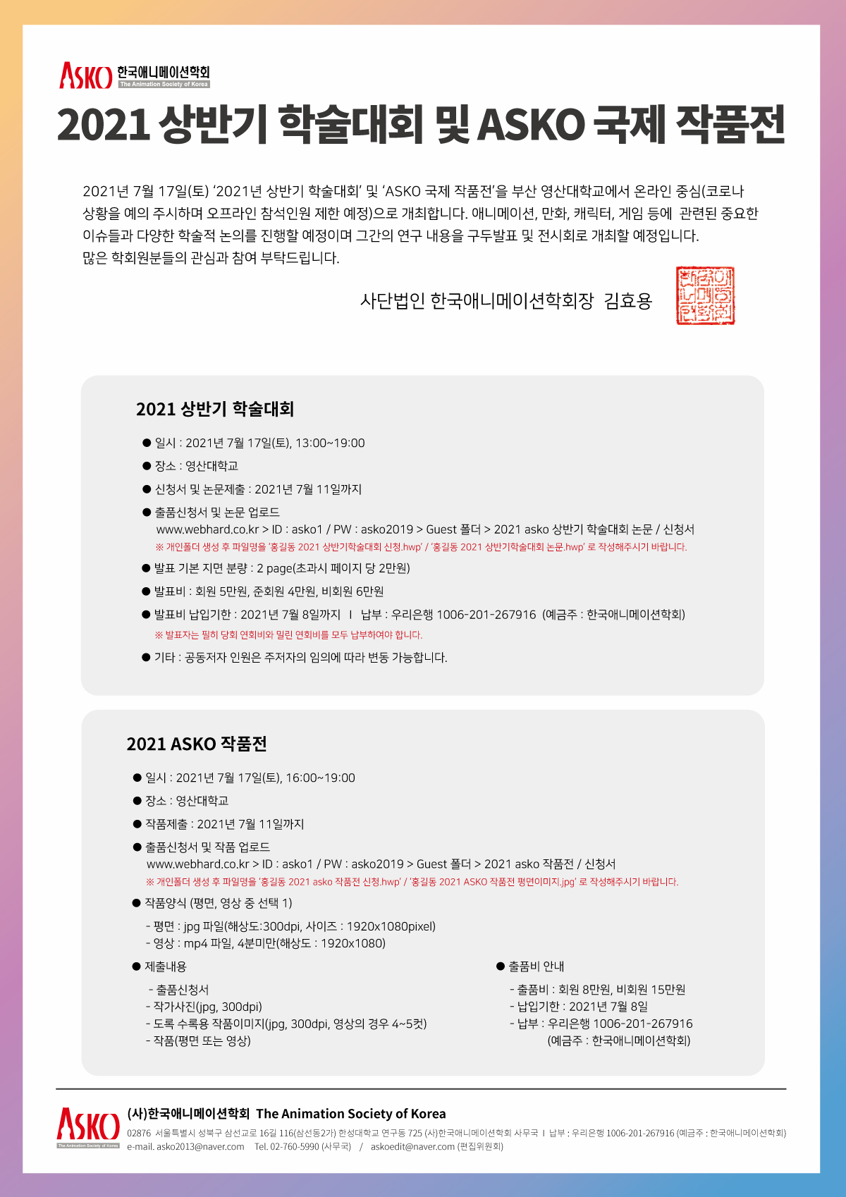 [한국애니메이션학회] 2021년 상반기 학술대회 및 asko 국제 작품전 안내