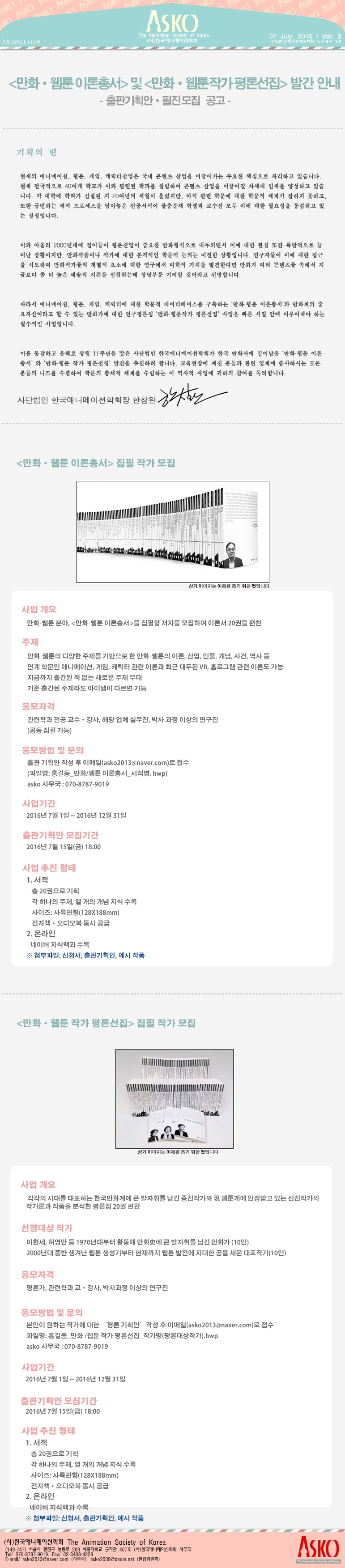<만화/웹툰 이론총서> 및 <만화/웹툰 작가 평론선집> 출판기획안 2차 공고