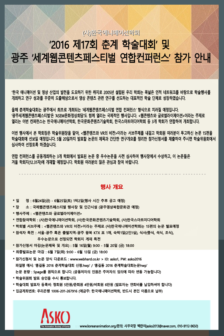 '2016 제17회 춘계 학술대회’ 및 광주 ‘세계웹콘텐츠페스티벌 연합 컨퍼런스’ 결과 보고