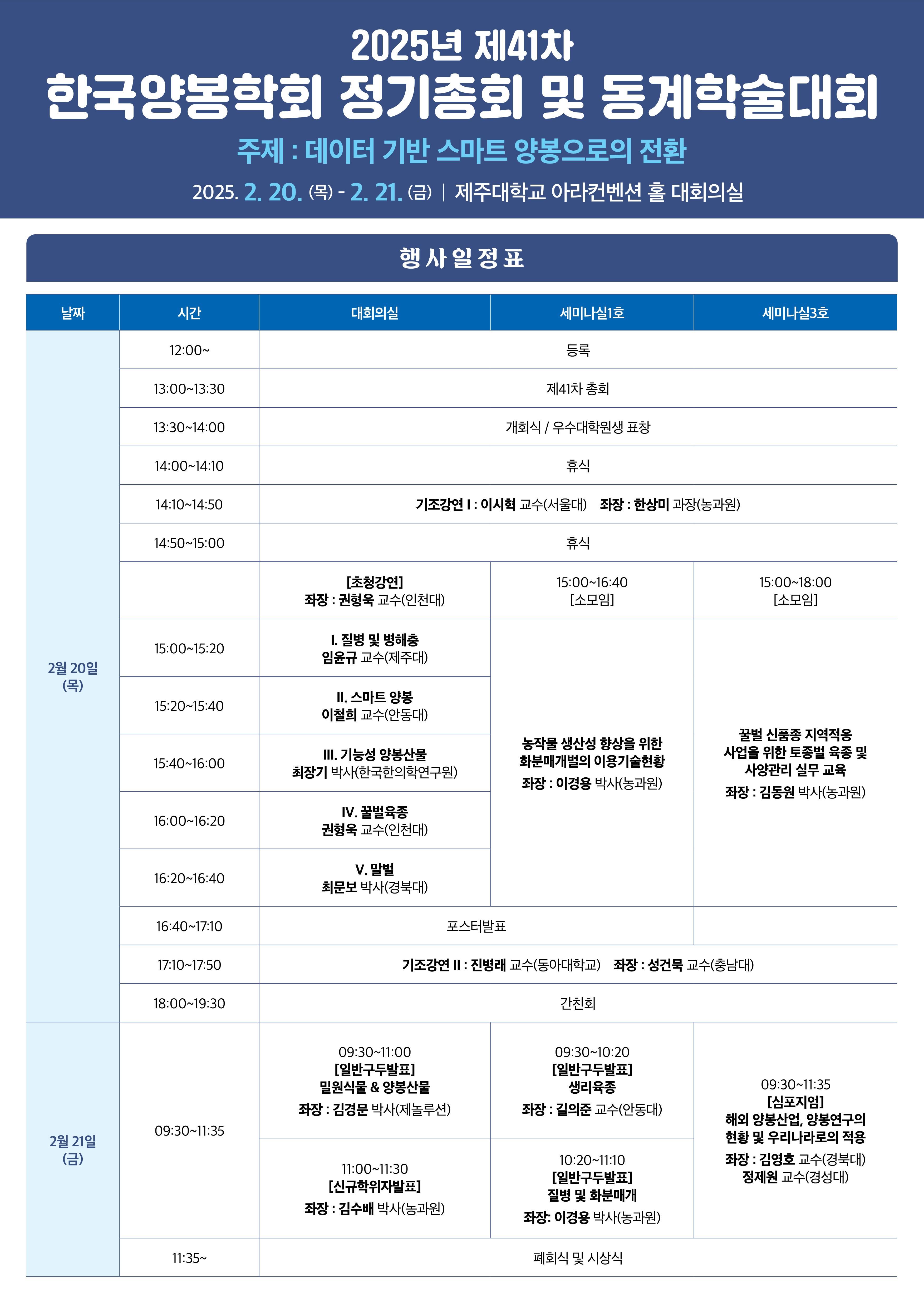 2025년 제41차 한국양봉학회 정기총회 및 동계학술대회 일정표 안내