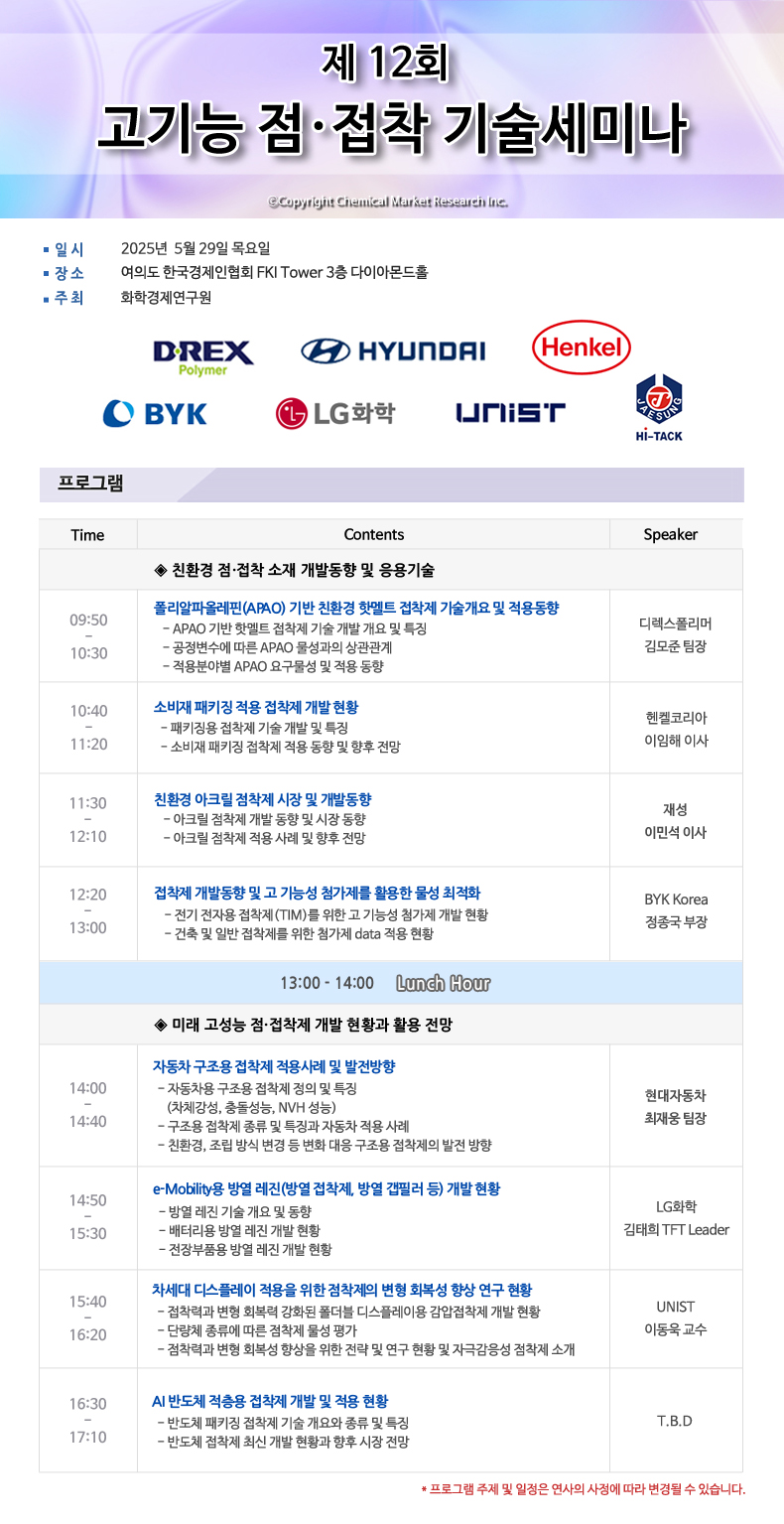 화학경제연구원 제12회 고기능 점·접착 기술세미나 개최안내