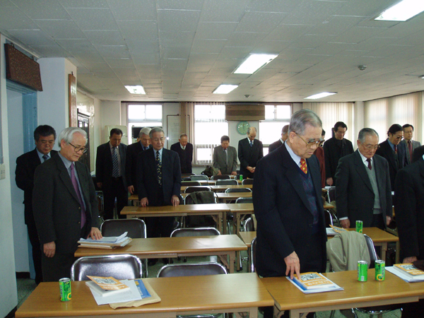 2005년 3월 23일 (수) 오후 5시에 한글 회관 강당에서 있은 '2005년도 외솔회 정기총회'의 한 모습입니다(국민의례). (찍은 이: 꿈돌이, 2005년 3월 23일.)