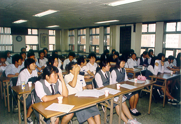 2004년 9월 15일, 강남 중학교 '사회 참여 체험 학습의 날'에 이 학교 3학년 34명의 학생들이 한글 학회 강당에 모여 '한글날의 발자취, 한글 학회의 발자취, 한글 학회가 하는 일, 간판 조사 방법'에 대한 설명을 듣고 있다.