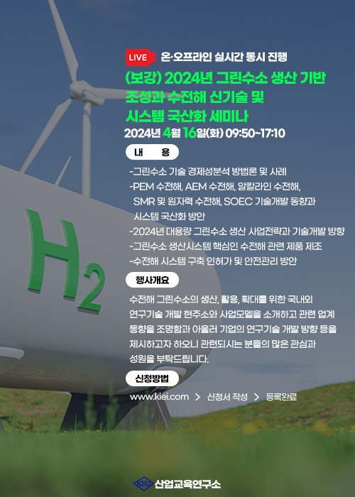 [산업교육연구소] 04.16) (보강) 2024년 그린수소 생산 기반 조성과 수전해 신기술 및 시스템 국산화 세미나