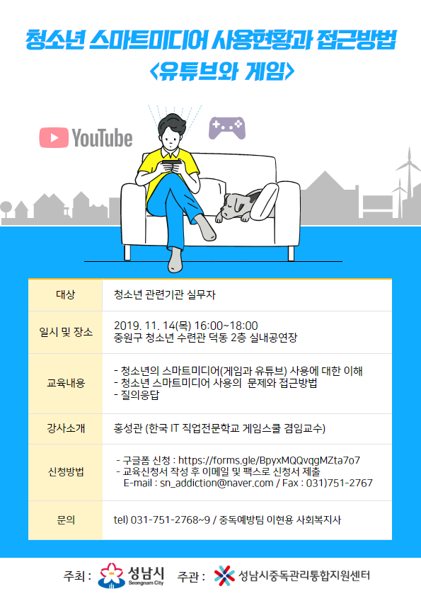 [성남시중독관리통합지원센터]청소년스마트미디어 사용현황과 접근방법_유튜브와 게임