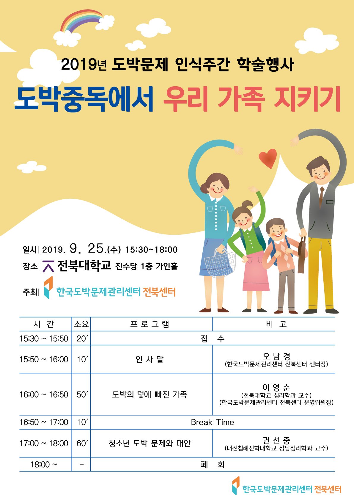 [한국도박문제관리센터 전북센터] 2019년 도박문제 인식주간 학술행사 도박중독에서 우리가족 지키기 " 안내"