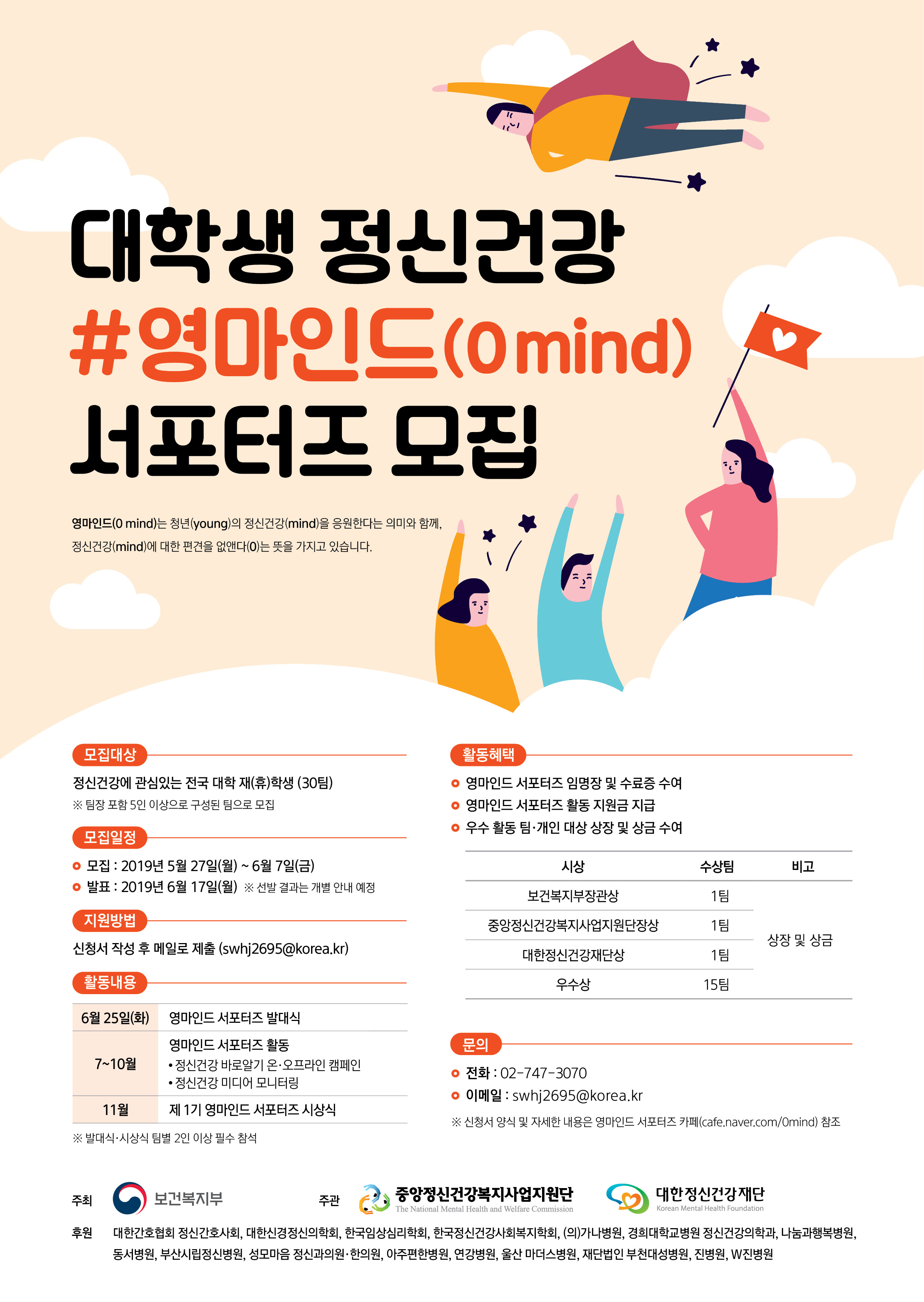 대학생 정신건강 서포터즈 ‘영마인드(0 mind)’를 아래와 같이 모집함을 안내드립니다.