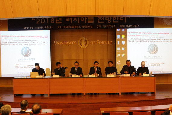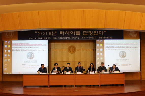 2018년 1월 12(우리연구소는 한국외대 서울캠퍼스 미네르바콤플렉스 국제회의실에서 연례보고서 RUSSIA REPORT 발행의 일환으로 “2018 러시아를 전망한다” 제하의 국내학술대회를 개최했다우리연구소의 2018년 첫 학술행사로서 본 회의에는 러시아 전문가와 학문후속세대 등 총 50여 명이 참석하여 성황을 이뤘다.