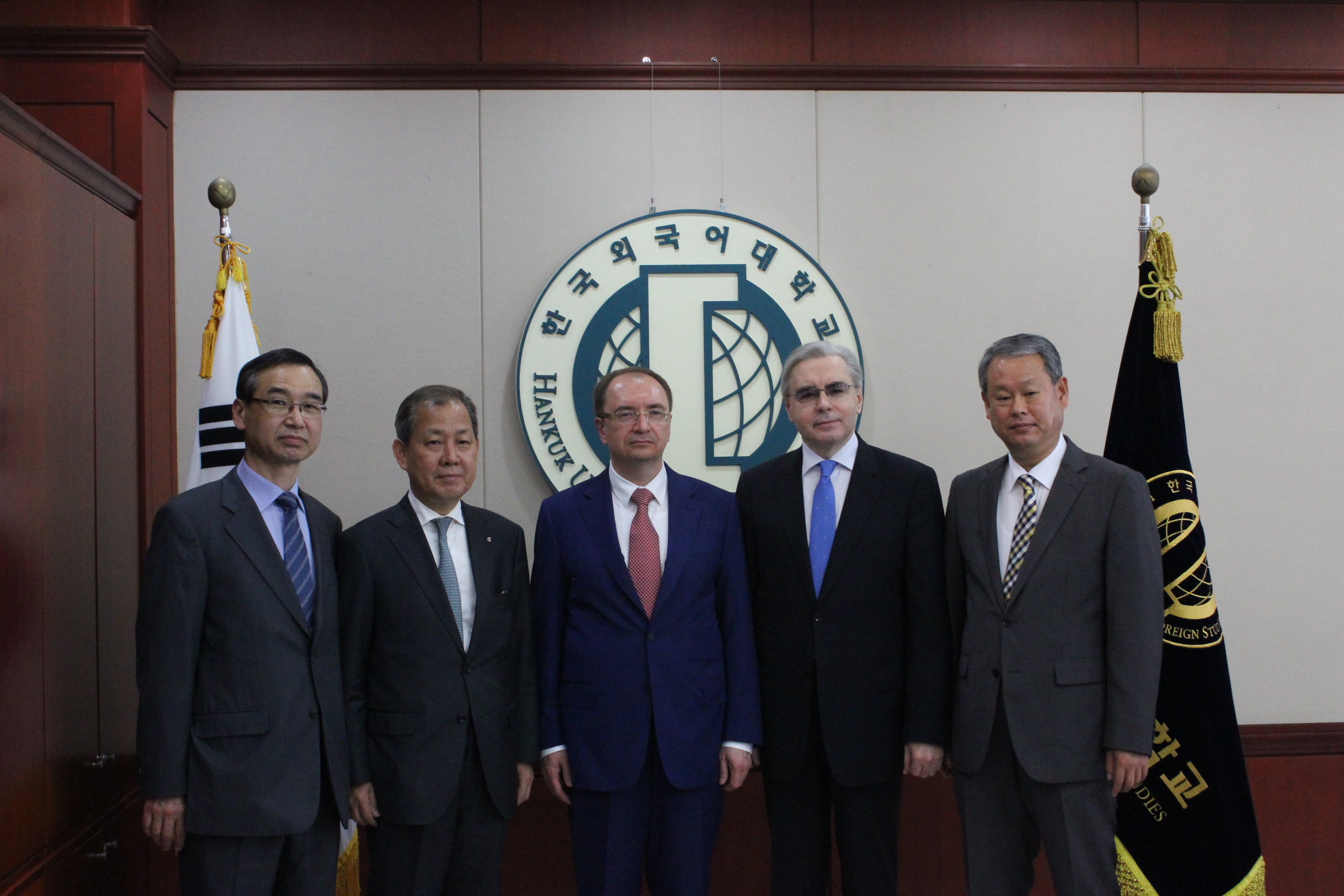 러시아연구소는  2017 년  5 월  23 ( 서울캠퍼스 이덕선 회의실 ( 본관 203 ),  러시아연구소 서울사무소 ( 본관 908 ) 에서 상트페테르부르크 국립대 한국대표부 개소식 및 현판식을 거행했다 러시아의 명문대학인 상트페테르부르크 국립대 (Saint Petersburg State University) 는 최근 국제 협력 강화 사업의 일환으로 한국 중국 미국 프랑스 4 개 국가에 대표부 개설을 결정하였고 국내 대학 가운데 우리 대학이 한국 대표부 유치 대학으로 선정되었다 이번 대표부 개설을 축하하기 위해 방한한 크로파체프 상트페테르부르크 국립대 총장을 비롯하여 티모닌 주한 러시아 대사 김인철 총장 김현택 대외부총장 강덕수 러시아연구소장 오종진 국제교류처장 홍완석 러시아학과 교수 제성훈 노어과 학과장 허승철 KRD  사무국장 단국대 함영준 교수 등이 내빈으로 참석했다 본 행사가 끝난 후에는 상트페테르부르크 국립대 출신 한국 동문과의 간담회 시간을 가졌다 향후 한국대표부에서는 양 대학 간의 학자 교류 학생 교류 공동국제학술대회 개최 학술 서적 발간 양 대학 홍보 등의 교류 제반 업무를 담당하게 된다 학술 교류뿐 아니라 한 · 러 양국 교류의 첨병으로서 큰 역할을 하게 될 것이다 .