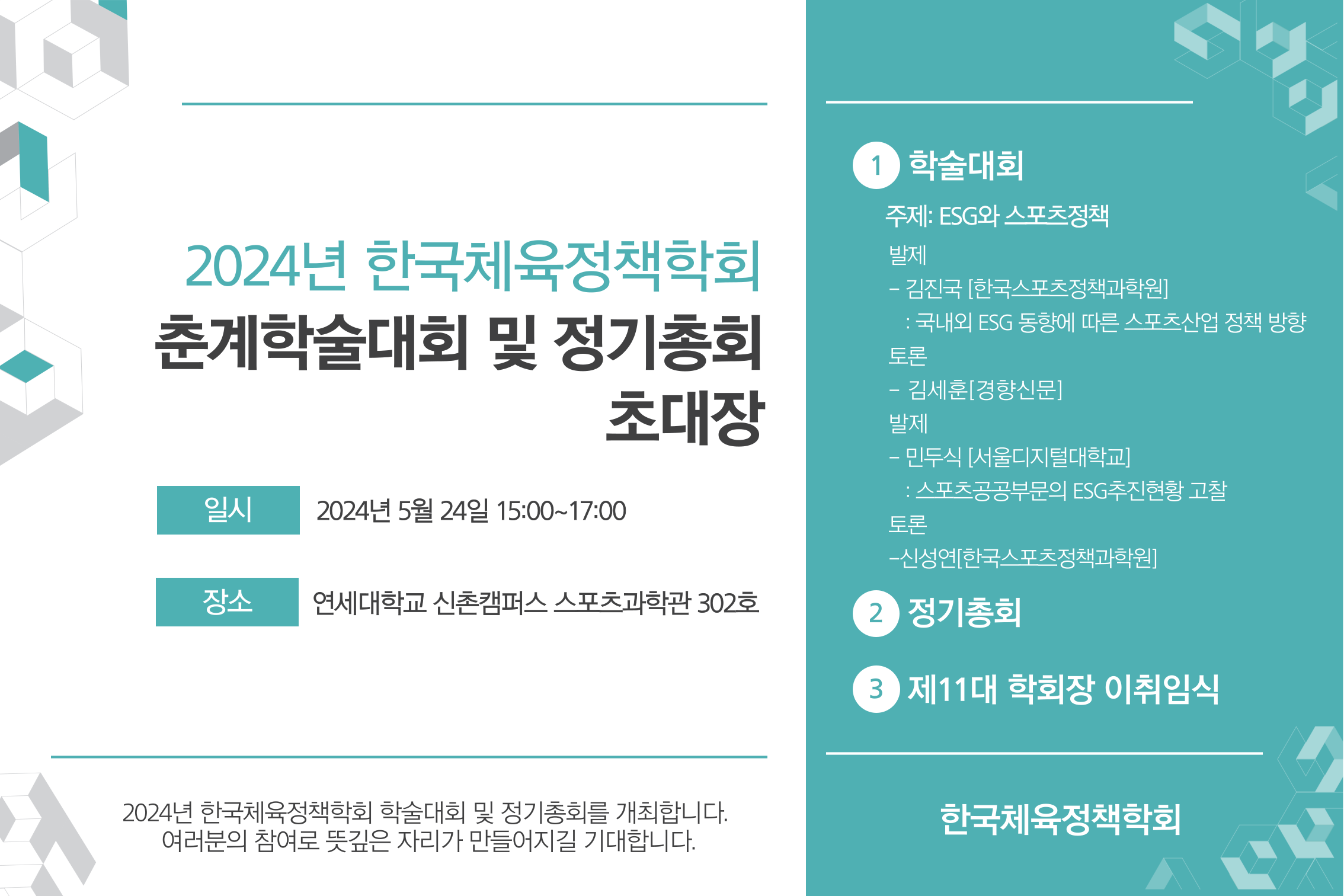 2024년 한국체육정책학회 춘계학술대회 및 정기총회 개최 안내